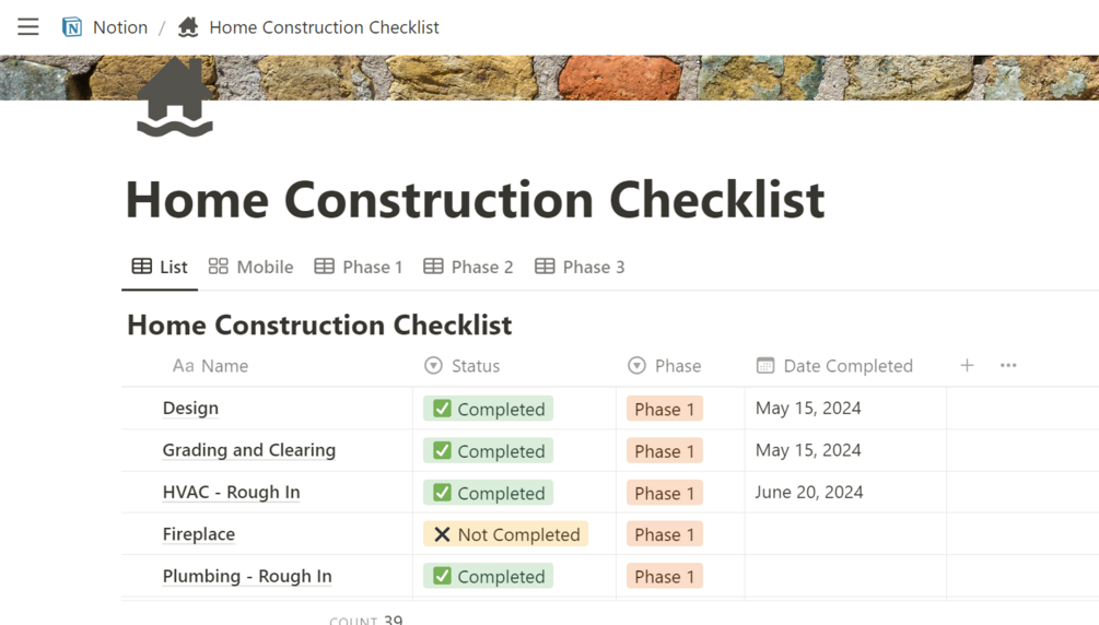 ✅ A FREE ready-to-use Notion Home Construction and Renovation Checklist